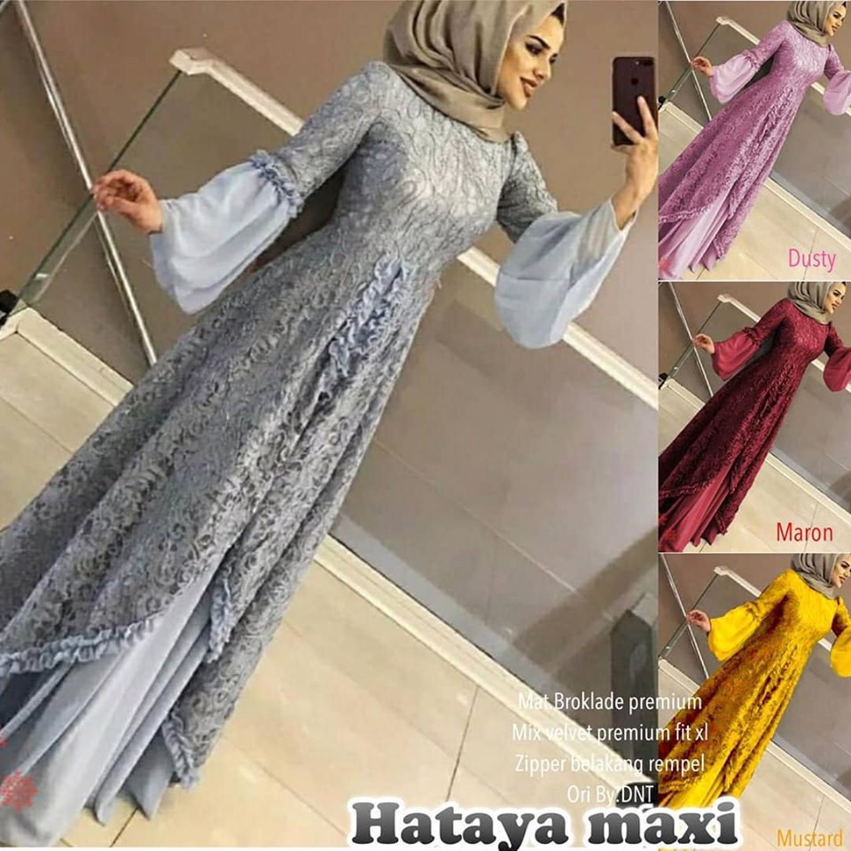 Uncategorized Desain Gamis Brokat Pesta Bagaimana jika brokat dipadukan dengan bahan lain Desain gaun pesta untuk muslimah elegan simple tampilan mewah 2